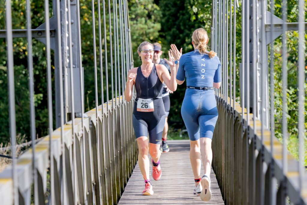 Damit die Überquerung zum besonderen Highlight wird, haben wir den Steg kurzerhand zur High Five Bridge erklärt: Klatsche mit deinen entgegenkommenden Mitstreitenden ab ✋, motiviert euch gegenseitig 💪 und nehmt die zusätzliche Energie mit auf die verbleibenden Kilometer der Laufstrecke 🏃♀️🏃♂️!
